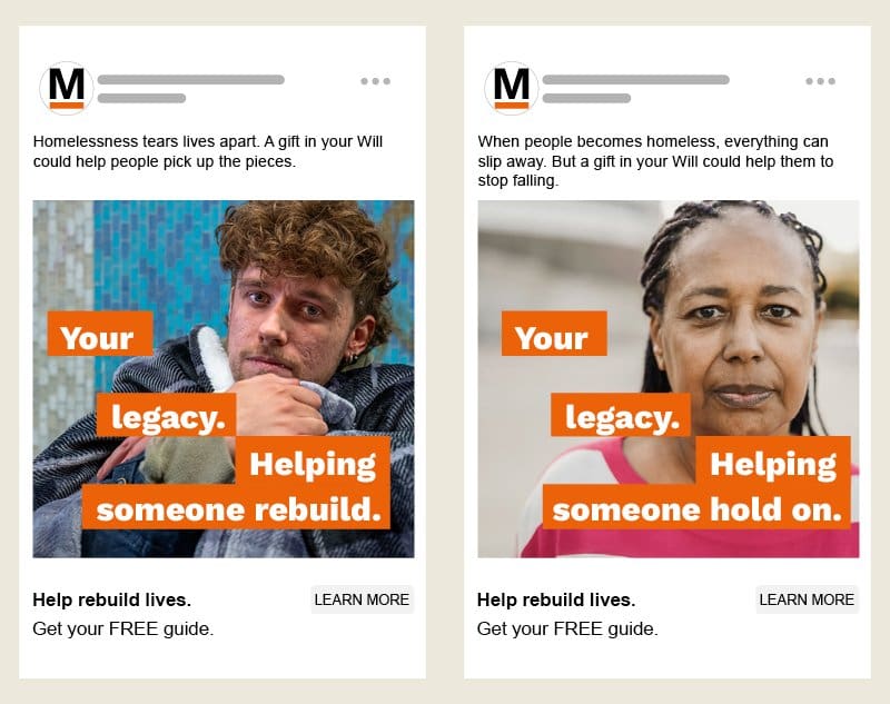 A strong, insight-led legacy proposition, created with supporters and prospective supporters at its heart. It gives St Mungo’s the clarity and confidence to communicate the long-term impact of legacy giving consistently across all channels, turning an abstract decision into something human, tangible, and meaningful… now and into the future.